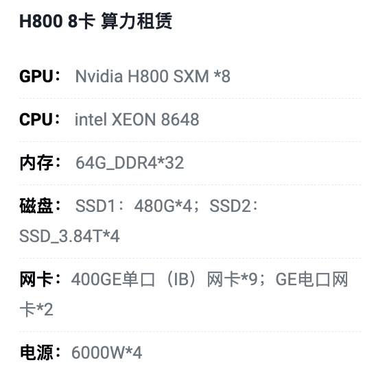 沧州H800八卡算力租用价格